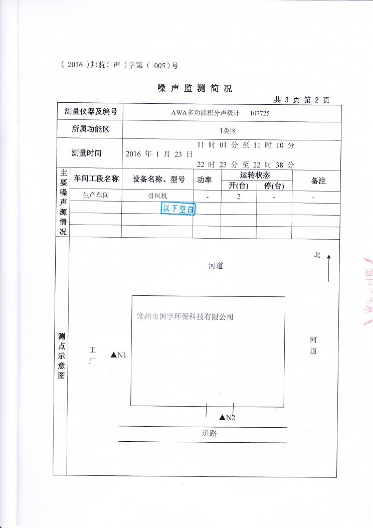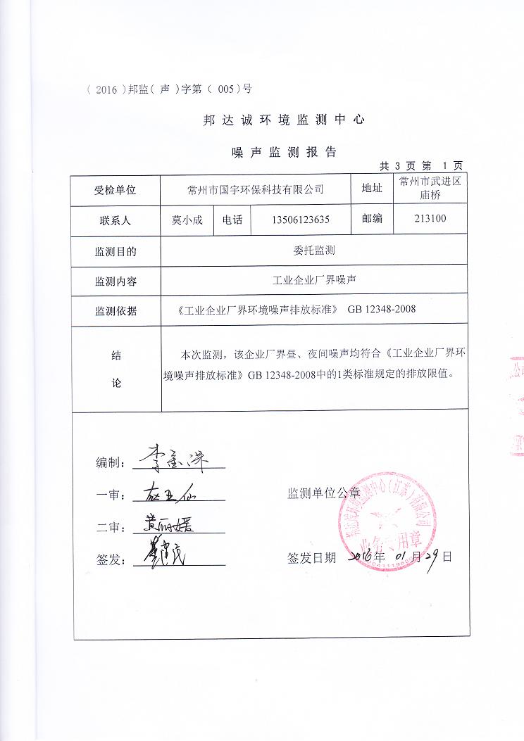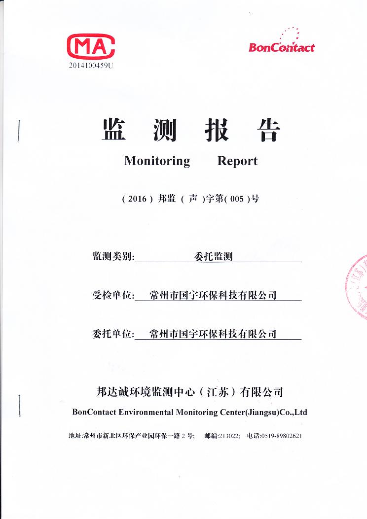 2016年常州市國(guó)宇環(huán)??萍加邢薰韭暠O(jiān)測(cè)報(bào)告網(wǎng)上公示