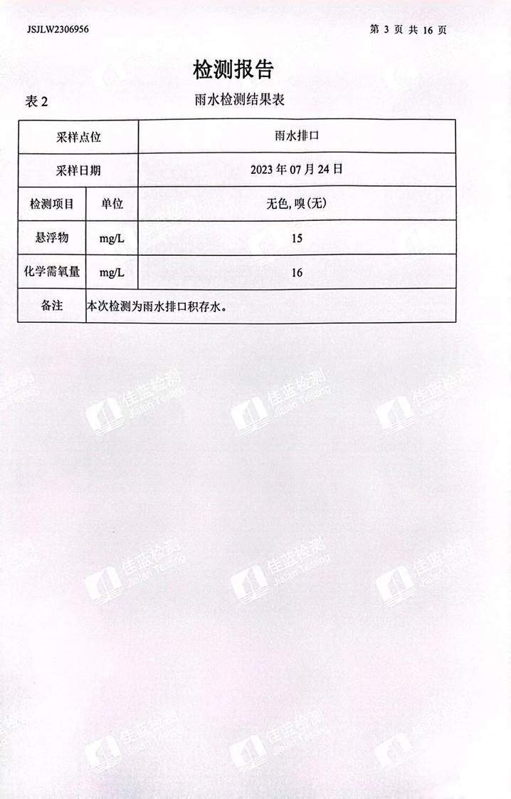 雨水檢測(cè)報(bào)告